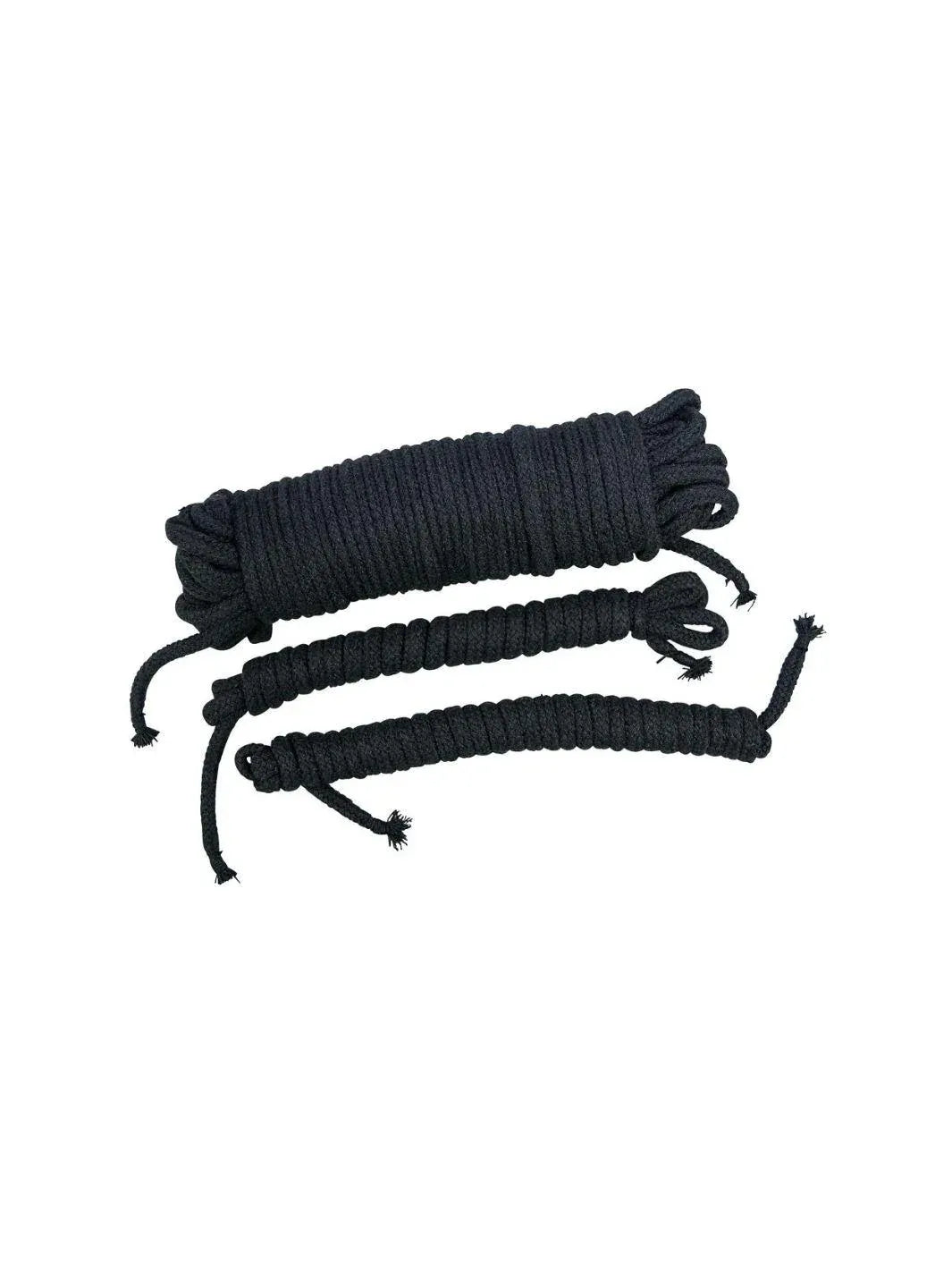 … met deze set van drie gevlochten bondagetouwen zonder kern! 1 x 20 m, 2 x 3 m. 100% katoen.