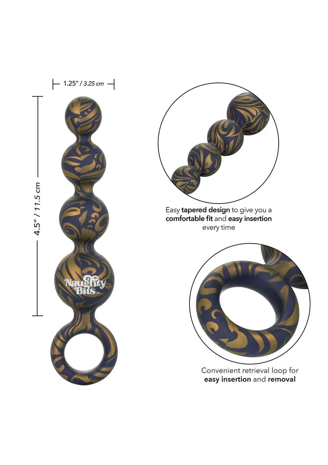 De Butt Balls Booty Beads is een set anale beads met zachte, taps toelopende kralen. Deze Booty Beads heeft een inbrengbare lengte van 11.5 cm en een maximale diameter van 3.25 cm. De Beads zijn gegradueerd naar grootte, zodat stimulatie op ieder niveau mogelijk is. Perfect geschikt voor zowel beginnende als ervaren gebruikers. De Booty Beads heeft een stevige ophaallus voor comfortabel inbrengen en terughalen. Gemaakt van zachte siliconen, volledig lichaamsveilig en zeer comfortabel in gebruik. Wij adviseren dit product te gebruiken met een glijmiddel.