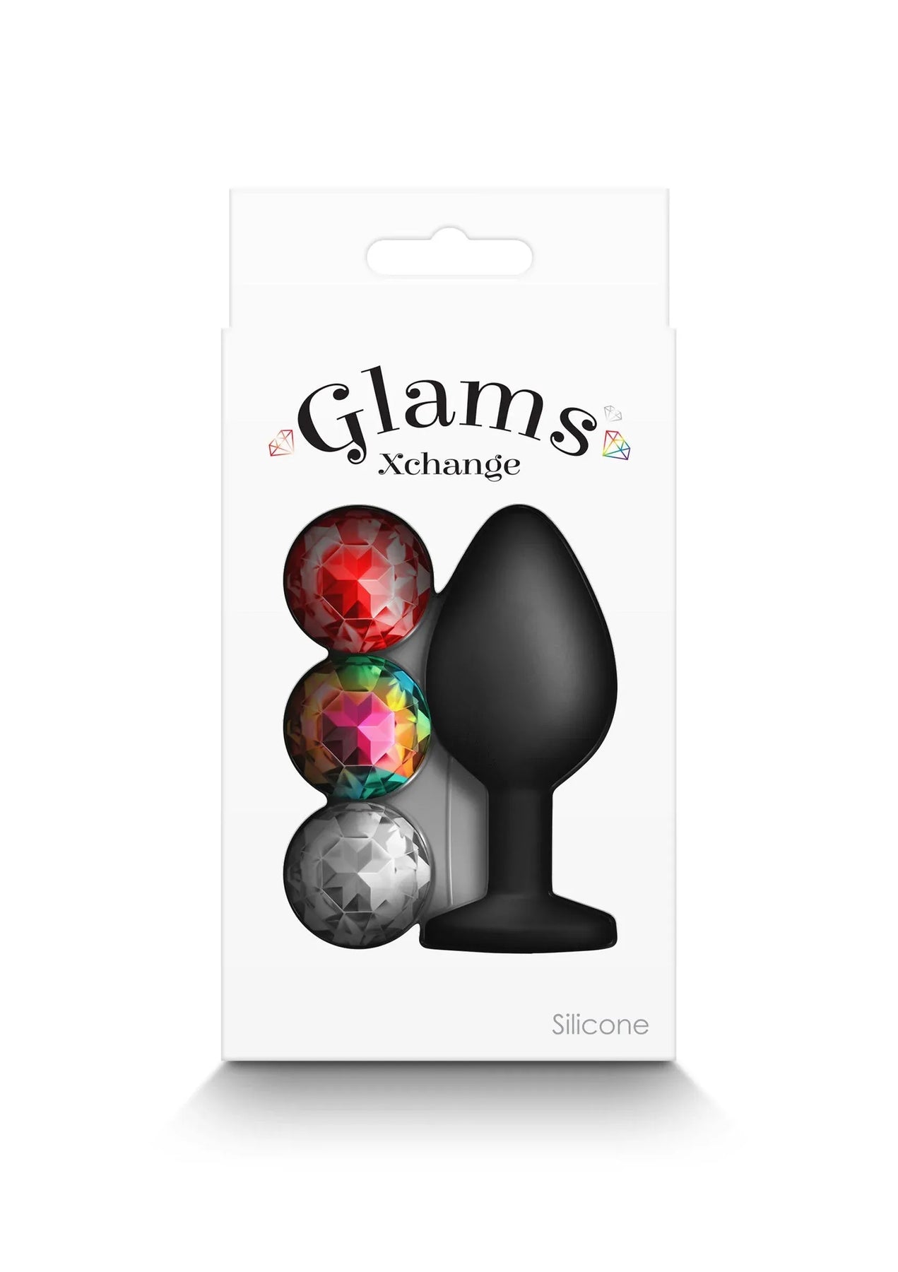 Match je stemming en billen met Glams Xchange. Een modieus accessoire voor verleiding en romantiek. Gemaakt van eersteklas siliconen met drie verwisselbare kleurrijke edelstenen.