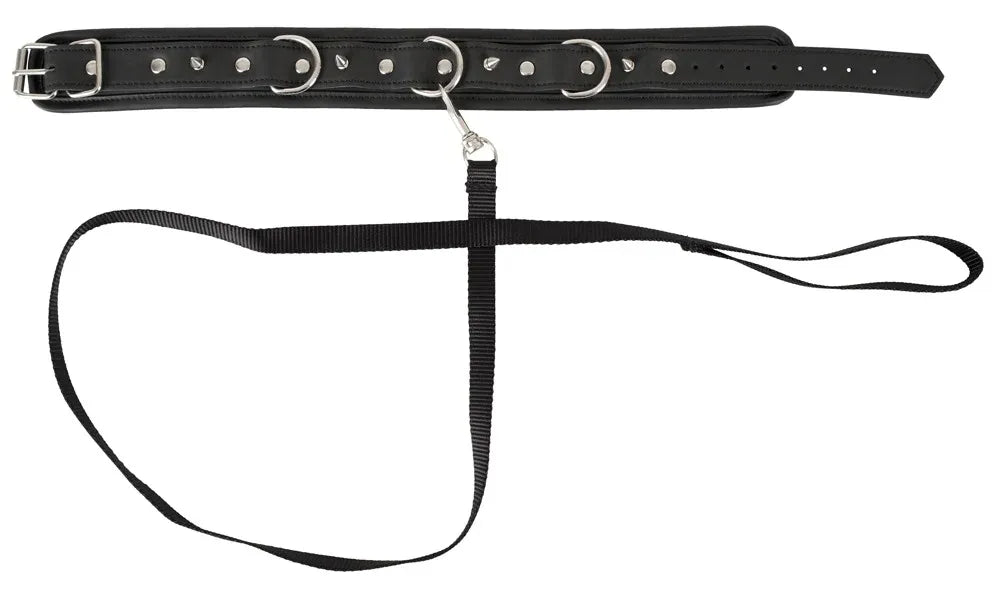 De omtrek van de halsband is verstelbaar van 37–47 cm; riem 112 cm lang.