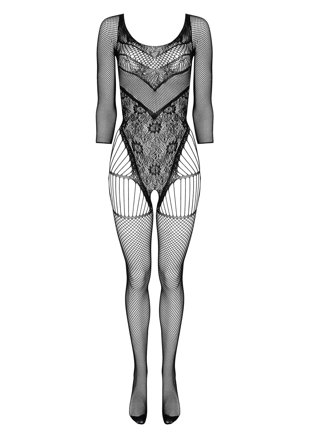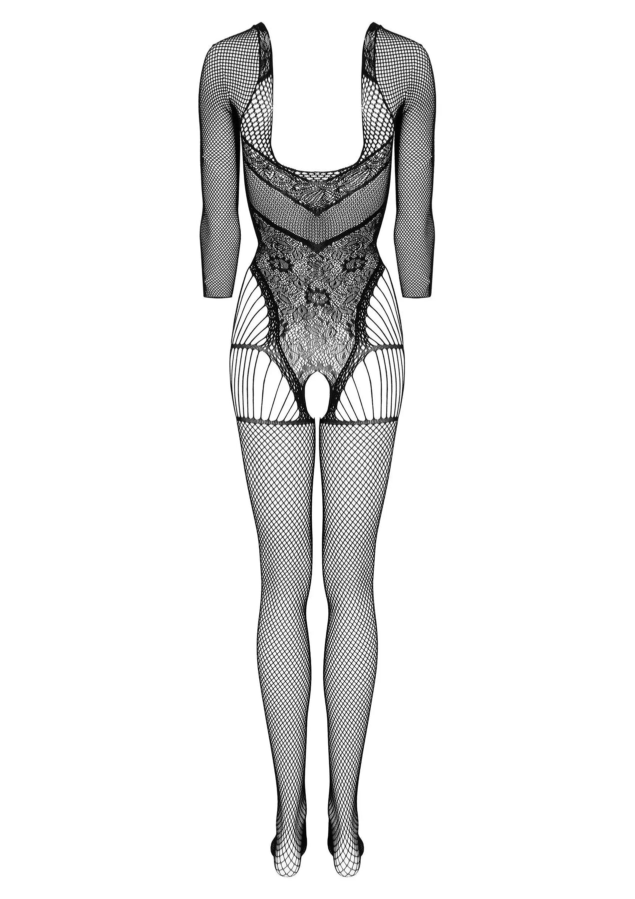 De Kotek Bodystocking Ronde Hals in elegant zwart is een onweerstaanbaar lingeriestuk dat stijl en sensualiteit perfect combineert. Gemaakt van zacht, rekbaar materiaal, sluit het moeiteloos aan op het lichaam en accentueert het de vrouwelijke vormen op een manier. Het verfijnde ontwerp met fijne mesh en delicate patronen trekt de aandacht en zorgt voor een verleidelijk effect. Een opvallend kenmerk is het open kruis, wat een extra erotische touch toevoegt. Dankzij de naadloze afwerking biedt deze bodystocking maximaal comfort, waardoor hij niet alleen visueel betoverend is, maar ook heerlijk om te dragen. Perfect voor speciale gelegenheden of als een luxe verwennerij voor jezelf, is de BG002 bodystocking een must-have voor elke lingerieverzameling—ideaal voor romantische momenten of een boost van zelfvertrouwen.