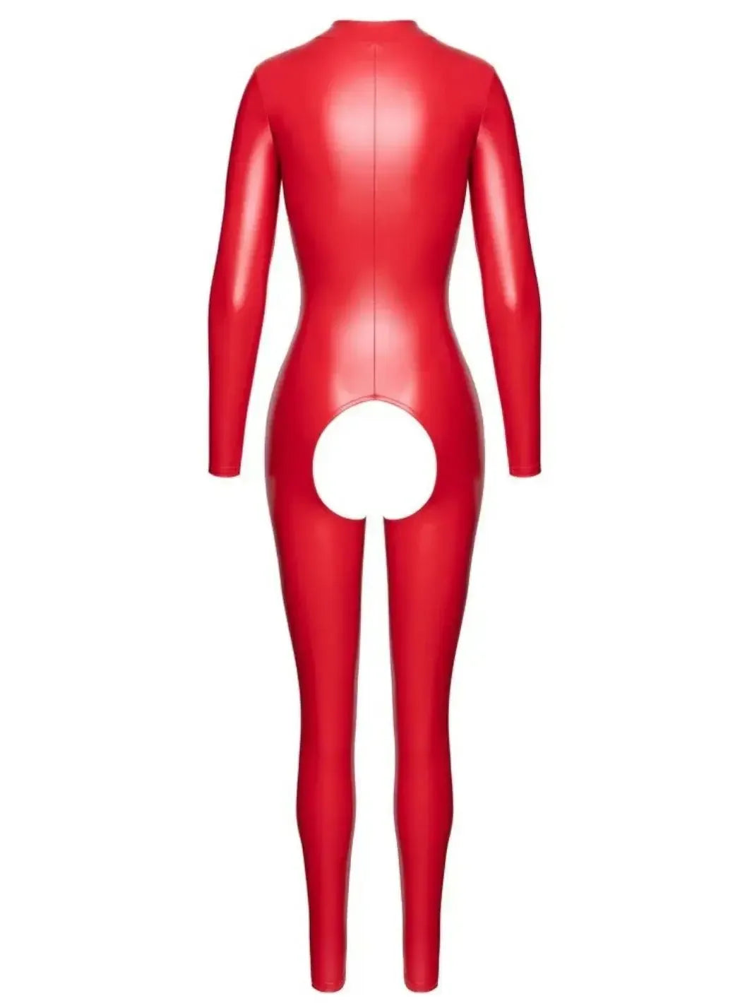 Noir Handmade Catsuit Open Rood met rits hoge hals is een echte blikvanger voor liefhebbers van wetlook catsuit, powerwetlook, rits. Het materiaal sluit nauw aan en voelt zacht en rekbaar aan, zodat je de look lang kunt dragen. De hoge hals benadrukt een krachtige fetish uitstraling.
