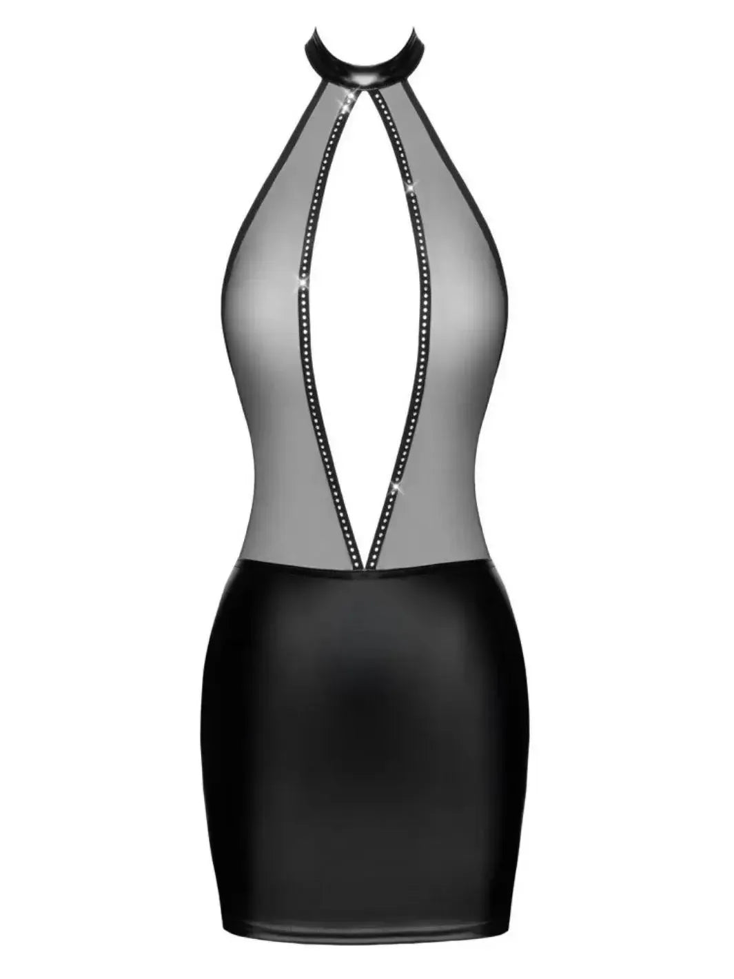 Noir Handmade Doorschijnende wetlook jurk open rug hoge hals is een echte blikvanger voor liefhebbers van wetlook jurk, powerwetlook, mesh. Het materiaal sluit nauw aan en voelt zacht en rekbaar aan, zodat je de look lang kunt dragen. De open rug geeft extra spanning en laat je schouders en taille mooi uitkomen. De hoge hals benadrukt een krachtige fetish uitstraling.