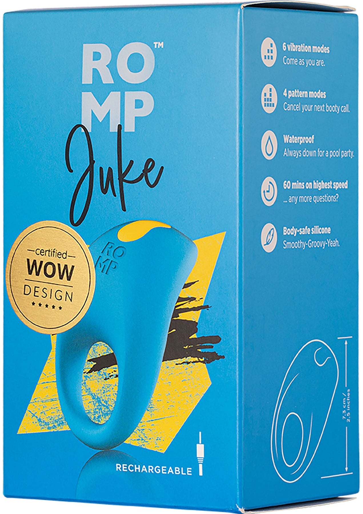 ROMP Juke Vibrerende Cockring - Blauw is een vibrerende cockring, ook wel Cockring of erectiering genoemd, ontworpen voor extra ondersteuning en meer gevoel tijdens het vrijen. met stimulator voor extra contactstimulatie.