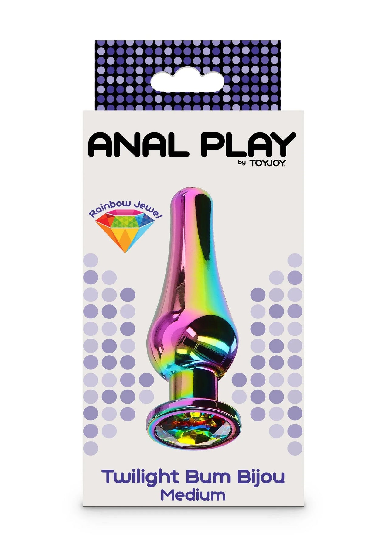 De Twilight Bum Bijou is een kwalitatieve buttplug met regenboogjuweel in de basis, waardoor je billen stralen met kleur! De slanke plug heeft een taps toelopend silhouet en een uitlopende basis, verfraaid met een regenboogjuweel. De Twilight Bum Bijou is gemaakt van aluminium en voelt soepel aan en is volledig lichaamsveilig. Een musthave uit de Anal Play collectie van TOYJOY. Het is de perfecte unisex plug om een glamoureuze en kleurrijke draai aan je anale avonturen toe te voegen.